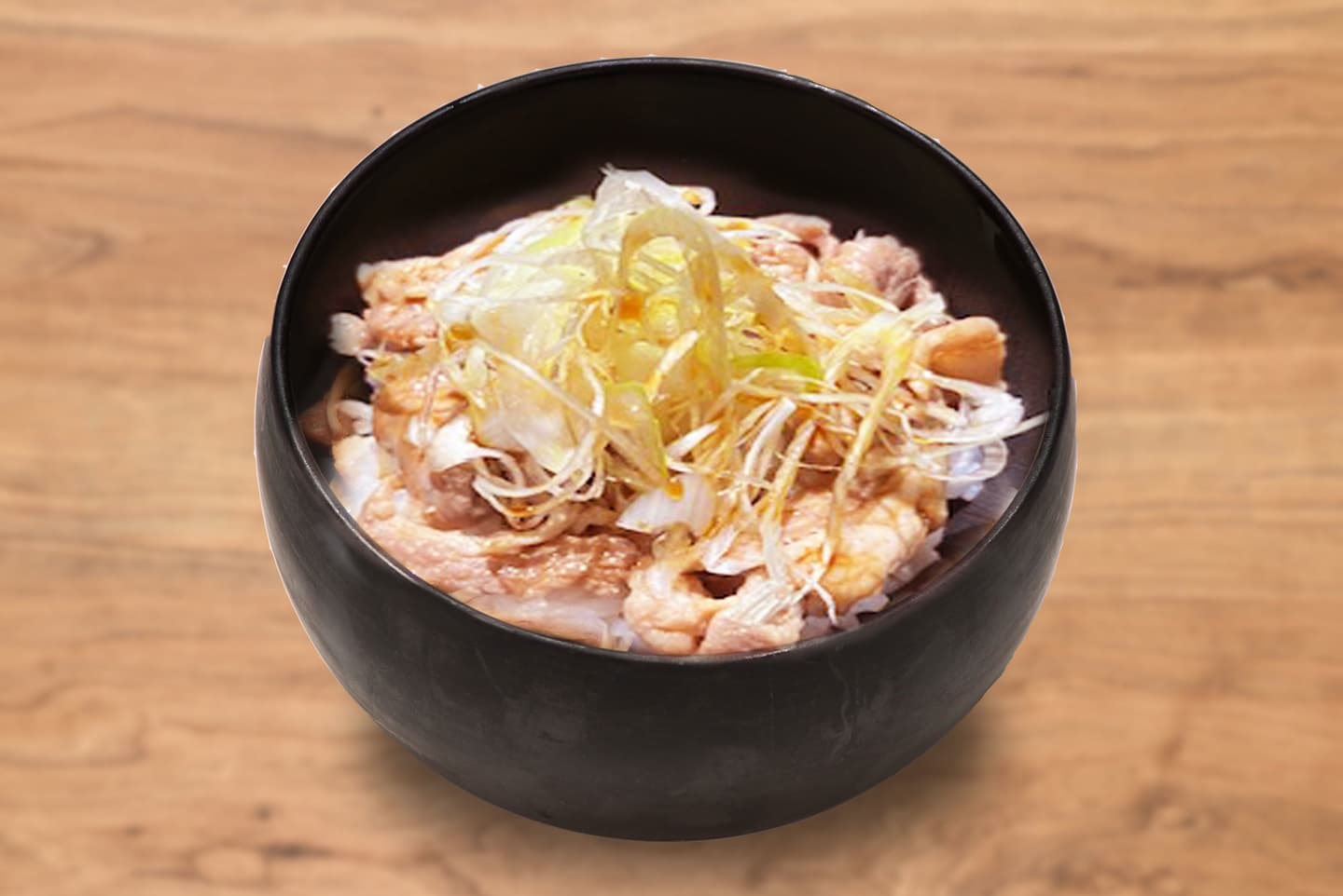 ごはんの上に十豚の味付き切り落とし肉にたっぷりの長ネギのせて仕上げました。十豚肉の旨味と長ネギのアクセントがやみつきに。